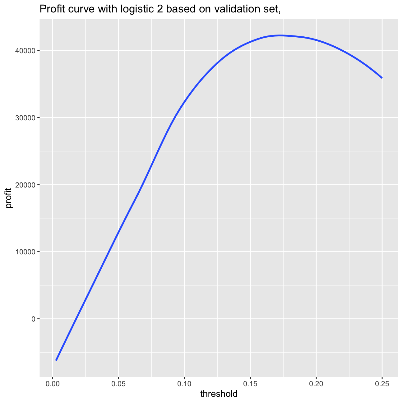 My best model is model logistic_wild. I managed to achieve the AIC at the level of 17420 and AUC of the model accounting to 68,43%.When it comes to expected returns, the ones based on model logistic_wild bring return amounting to 24,34% (in comparison to 23,70% from model logistic2) basing it on the validation set. When searching the model, I tried the LASSO method on training split, I tried as well to add variables on inflation and price, however, they would increase my AIC and decrease the AUC. Therefore, I sticked to model logistic_wild.