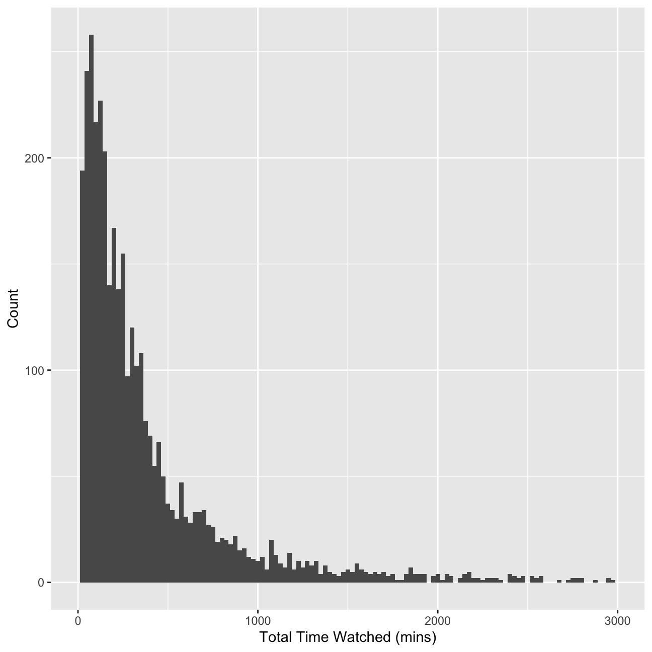 userData<-cleaned_BBC_Data %>% group_by(user_id) %>% summarise(noShows=n(), total_Time=sum(time_viewed_min))