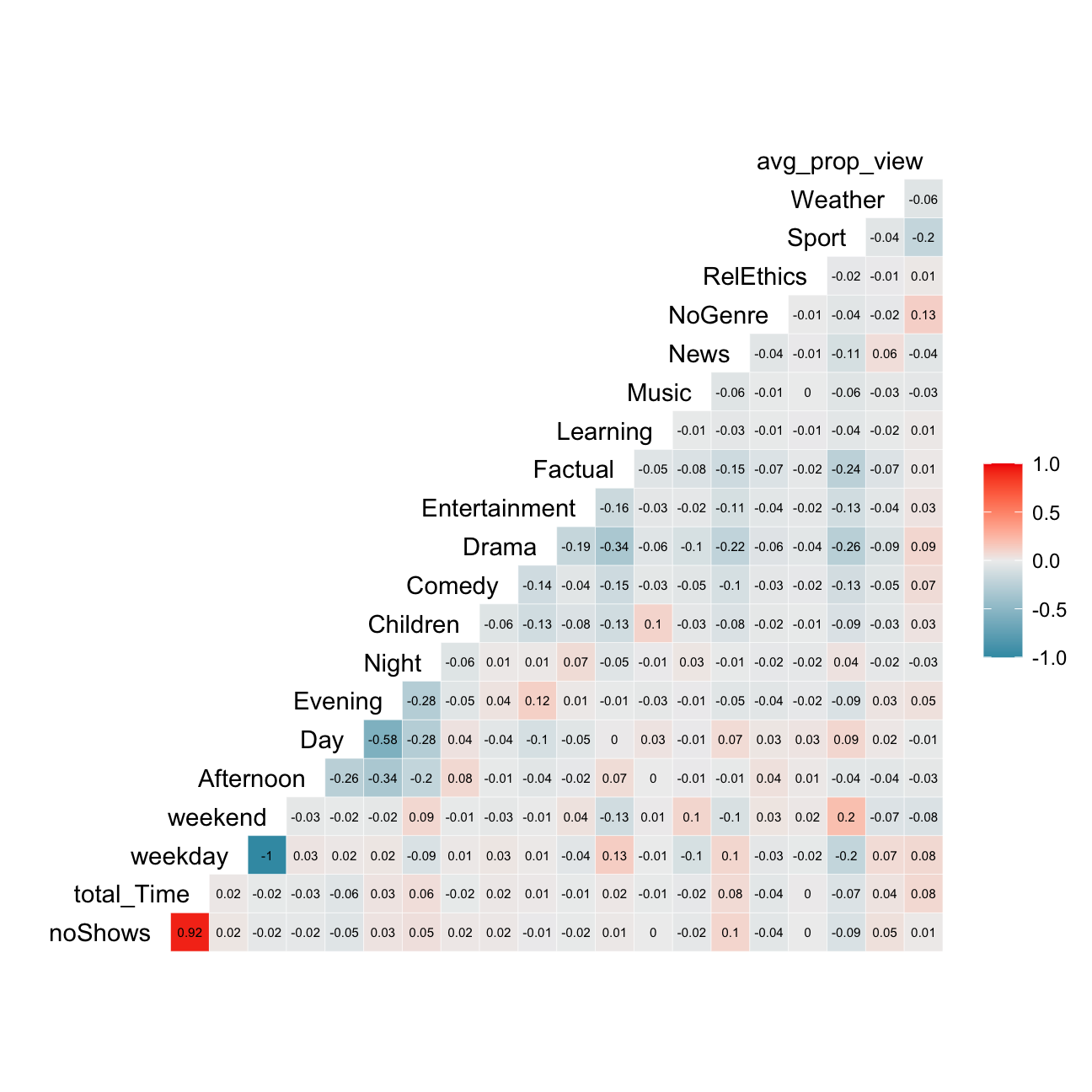 - Proportion of shows watched during the weekend for each user.
