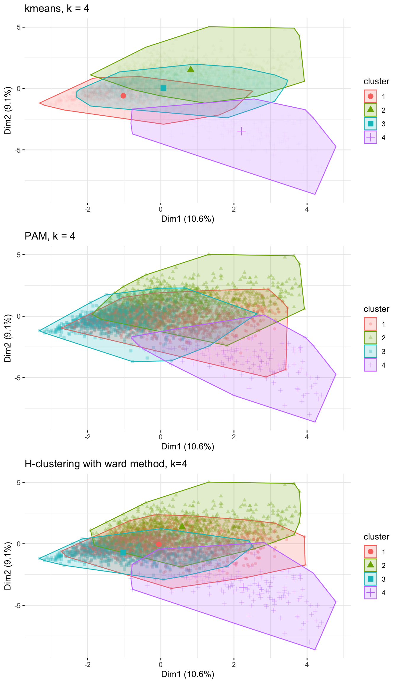 #comparing kmeans, PAM, H-clustering