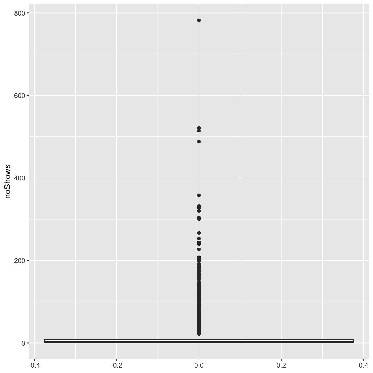 ggplot(userdatall, aes(y=noShows)) +geom_boxplot()