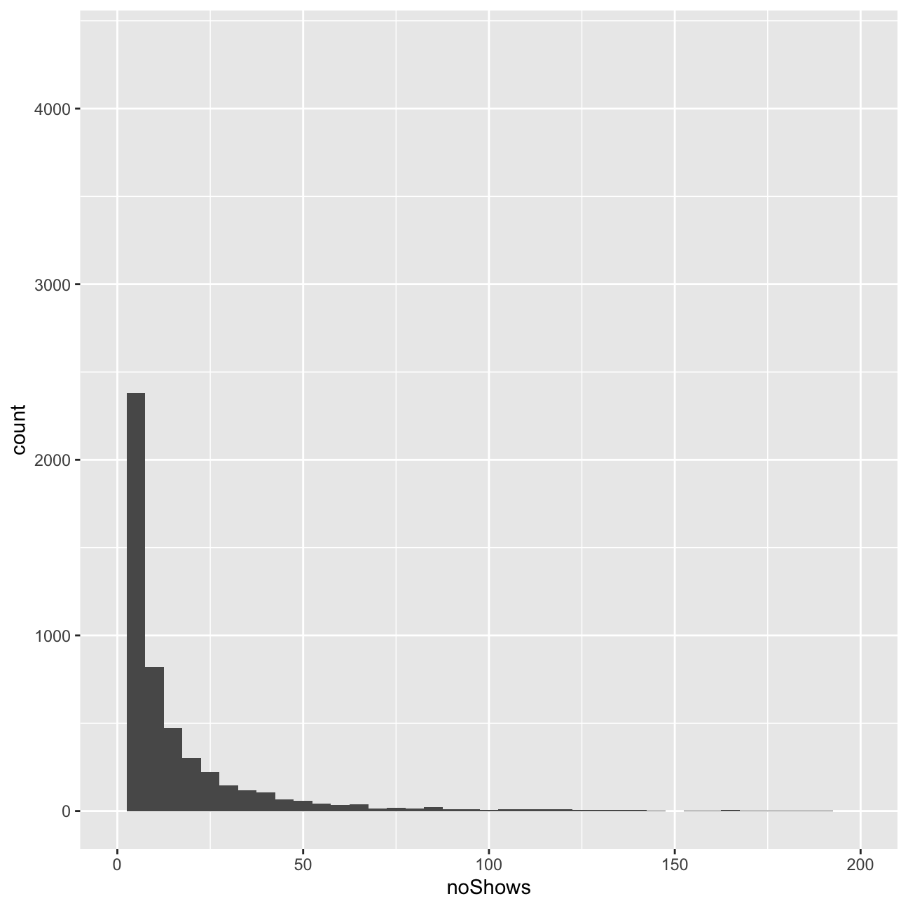 ggplot(userdatall, aes( x=noShows)) +