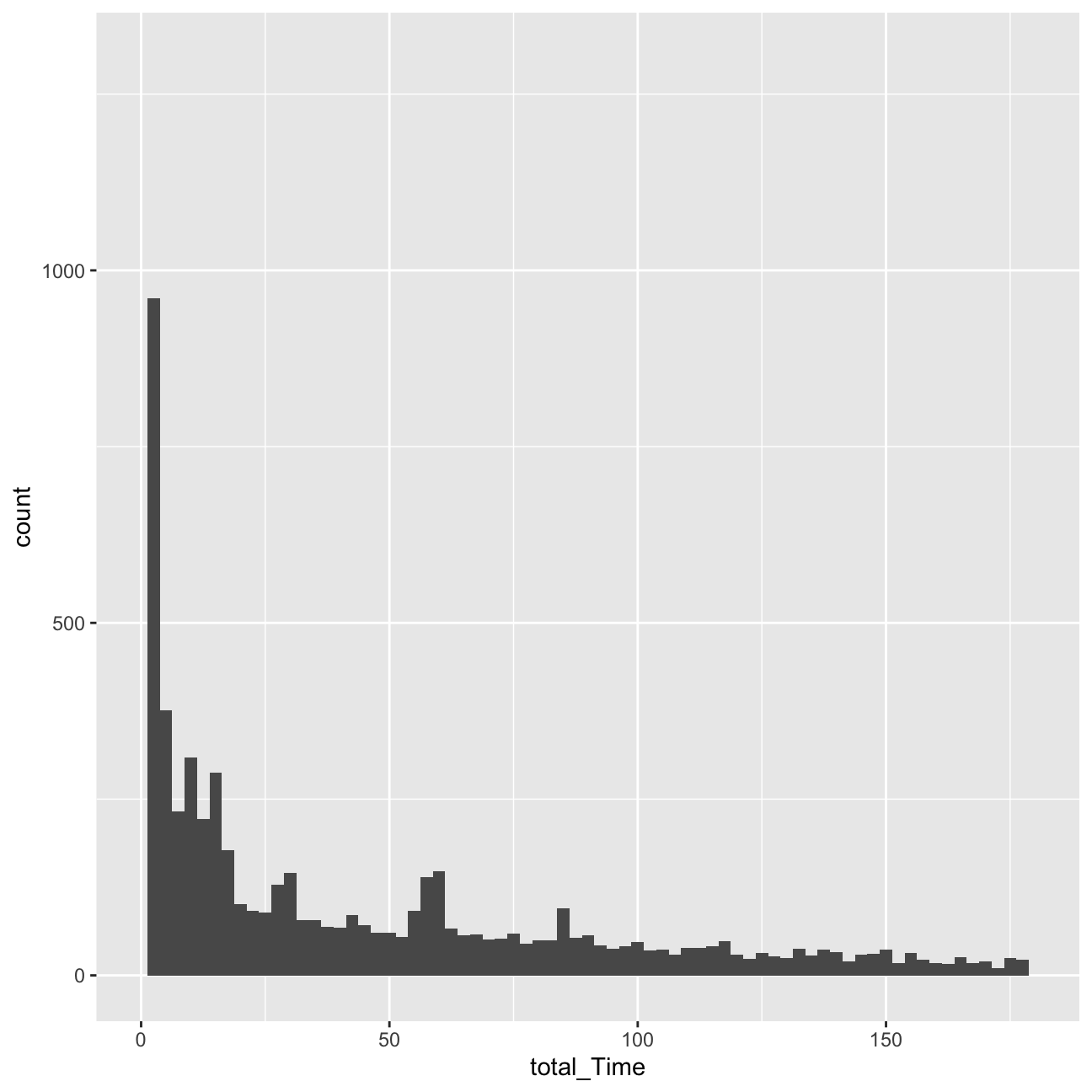 ggplot(userdatall, aes( x=total_Time)) +geom_histogram(binwidth = 2.5)+xlim(0,180)